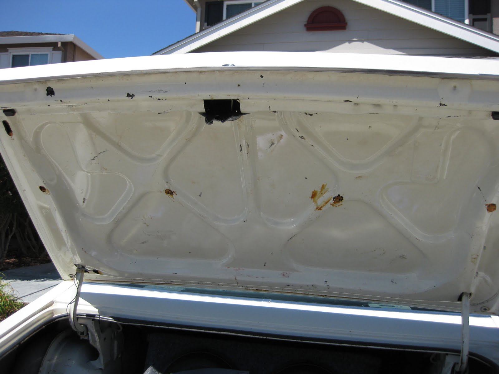 I sanded down the horribly eaten up "chrome saver" strip near the trunk. It's ready for paint tomorrow. It's going to be black.